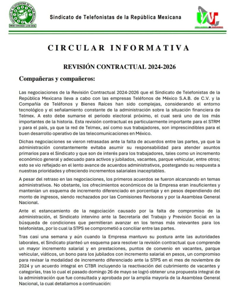 – Se ha acordado establecer una mesa de negociación con la Secretaría de Trabajo y Previsión Social, la empresa y el sindicato para abordar esta problemática en noviembre de 2024. Además, se propone un bono especial.