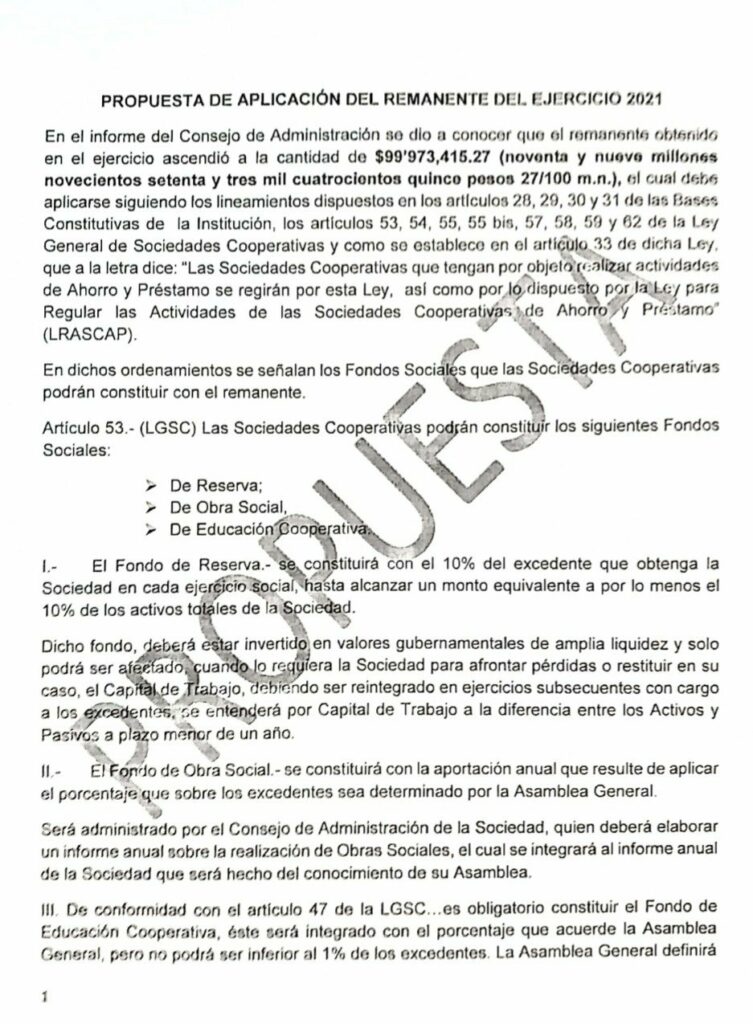 Finalmente nos presentan el dictamen del informe anual, que fue revisado por el Consejo de vigilancia, el cual se le dio voto de confianza para que continuarán el año corriente.