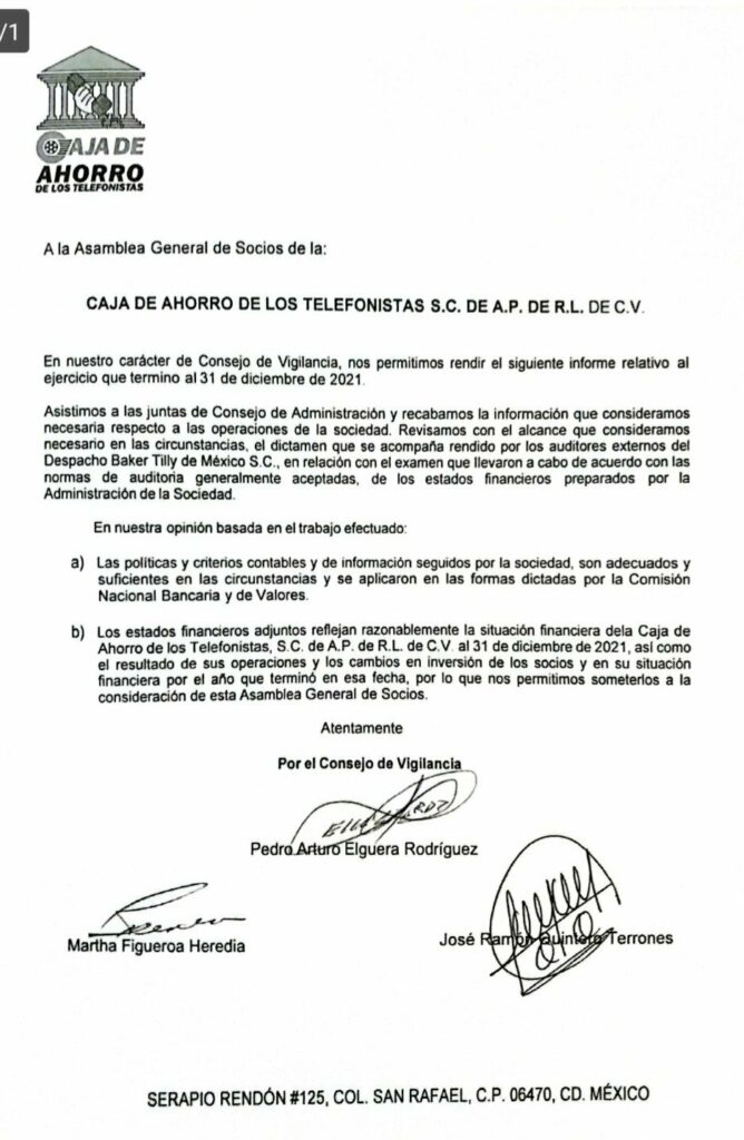 Compañeros, conforme a los estatutos, me tocó en esta ocasión ser delegado a la XXVII Asamblea General de Socios de la caja de ahorro de los telefonistas. En donde nos dieron el informe anual 2021, del cual hago un breve resumen a continuación.